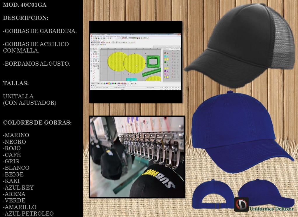 Gorras de Gabardina, Gorras de Acrílico con Malla, Bordamos al Gusto, Uniformes.